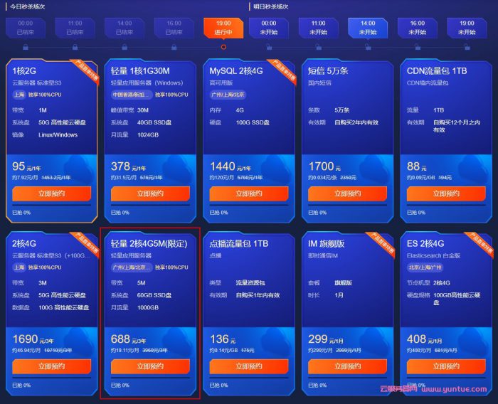 注:含爆款1核2G5M 288元/3年、2核4G5M 688元/3年(不限新老用户)。