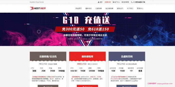 hostxen怎么样?hostxen是一是可DIY配置的云服务器主机平台,提供香港、美国、日本、新加坡多个数据中心业务,国内老品牌,口碑非常不错,主打XEN架构的机器,商家现推出了六月优惠活动,HostXen举办的618活动基本上都送钱活动,除了充值满额反现,还有新客户注册验证过后送20元代金券的活动,有需要的朋友可以入手。
