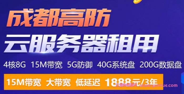配置:4核CPU,8G内存,15M带宽,40G系统盘+200G数据盘,5Gbps防御