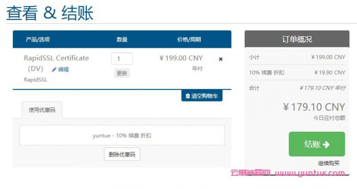 SSL证书优惠码:yuntue (专属优惠码折扣10%)