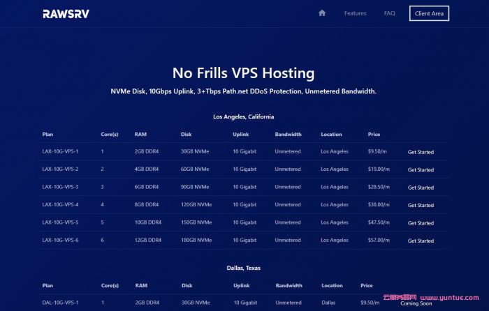 rawsrv:洛杉矶vps/1核/2GB内存/30GB NVMe/不限流量/10Gbps端口/DDOS/KVM,$9.5/月