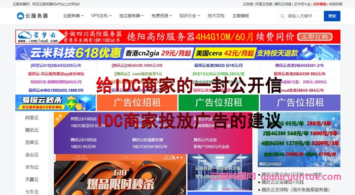 最近,云服务器网(yuntue.com)官方高调上线了广告赞助合作!在此之前,云服务器网官方一直提供免费投稿发布文章广告的合作,任何商家只要产品质量过关,没有用户投诉均可在网站上享受到产品的文章展示!并且是真的80%的可读性文章推向到了首页,只要你的产品性价比高、质量过关,都可以有机会获取到一定的用户注册及购买!目前,云服务器网已经为阿里云、腾讯云、UCLOUD等大型商家提供了至少上万客源,现开放对中小IDC及云商家合作,扶持更多的中小IDC一起成长,走向未来!