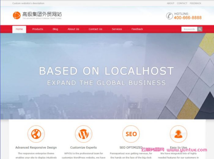 wordpress外贸集团企业主题,wordpress通用跨屏外贸企业响应式布局设计,内置更完善的外贸企业网站优化推广功能,完善的企业产品营销展示 + 高效后台自定义设置。wordpress高级推广外贸主题,采用标准的HTML5+CSS3语言开发,兼容当下的各种主流浏览器,根据用户行为以及设备环境(系统平台、屏幕尺寸、屏幕定向等)进行自适应显示; 完美实现一套主题程序支持全部终端设备,保证网站在各种设备环境下都能获得最好的用户体验。