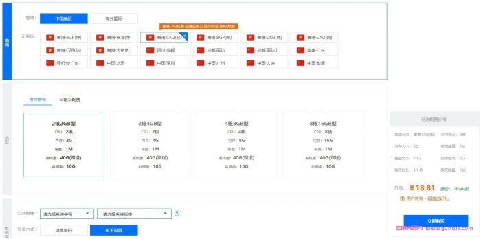易探云目前性价比最高的是香港·CN2(轻)可用区,香港CN2·2核2G云服务器仅18.81元/月起,225.72元/年起。由于该机型仅对新用户首购优惠,所以一般建议购买1年或3年,而不是选择1个月!