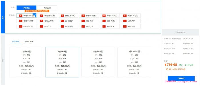 下面,再看爆款香港·BGP线路,香港2核4G5M云服务器仅98元/月起,年付仅799.68元/年起,年付享受6.8折优惠,这款配置也是建议年付哦!