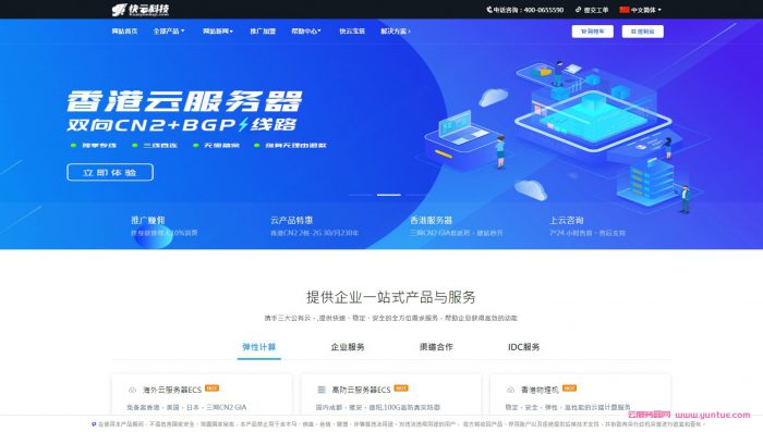 快云科技怎么样?快云科技是一家成立于2020年的新起国内主机商,资质齐全 持有IDC ICP ISP等正规商家。云服务器网(yuntue.com)小编之前已经介绍过很多快云科技的香港及美国云服务器了,这次再介绍一下新的优惠方案。目前,香港云沙田CN2云服务器低至29元/月起;美国超防弹性云/洛杉矶CUVIP低至33.6元/月起。快云科技的云主机架构采用KVM虚拟化技术,全盘SSD硬盘,RAID10阵列, 国内回程三网CN2 GIA,平均延迟50ms以下。硬件配置方面采用E5 2696v2 E5 26969V4等 偏中高端硬件大大的提升机器性能和稳定性。并支持LIUNX/windows系统,建站首选。