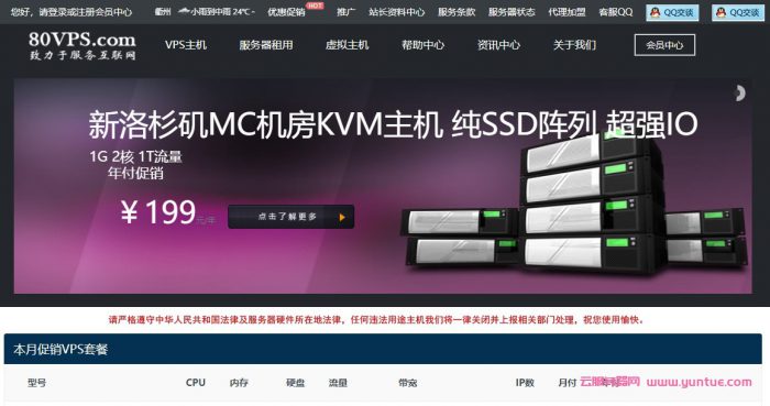 | 洛杉矶MC | E3-1240v2 | 32GB | 1TB(HDD) | 100M不限或15TB/1Gbps | 5个 | 820元/月 |