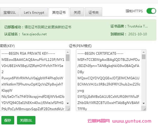 宝塔Linux面板nginx配置ssl证书的解决方案: