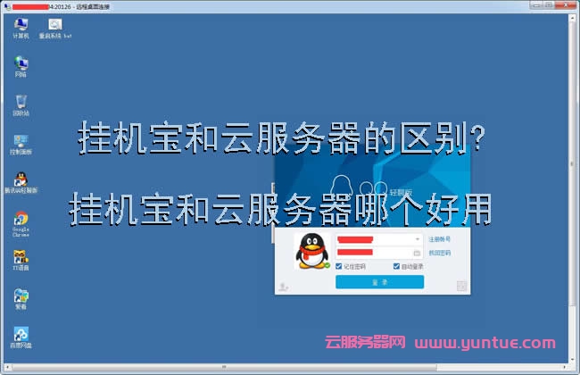 挂机宝和云服务器的区别?云服务器和挂机宝一样的都是远程桌面管理,只是挂机宝很多商家限制了不能挂网站,因为没有开放80端口,不能绑定域名,只能运行一些软件,所以叫挂机宝。