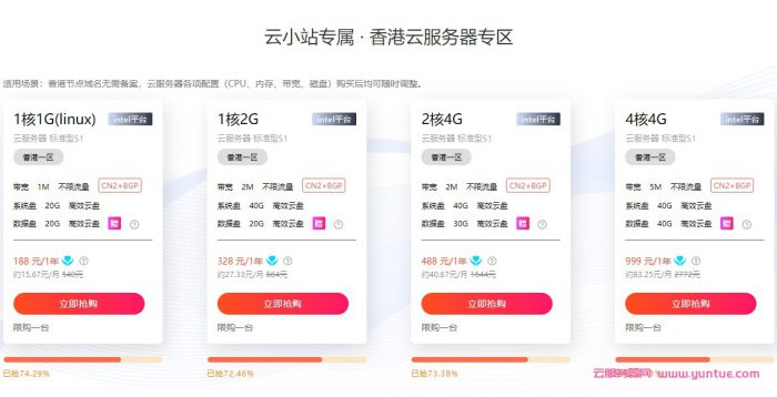 适用场景:香港节点域名无需备案,云服务器各项配置(CPU、内存、带宽、磁盘)购买后均可随时调整。