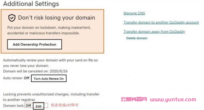 3.点击 “ Transfer domain away from GoDaddy”转移到其他域名商,如图
