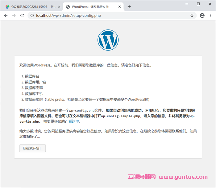 5、打开浏览器输入http://localhost/我们就可以访问网站了,这个是WordPress程序的安装界面。