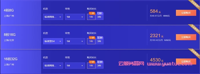 腾讯云首单限时秒杀活动中,企业专区可以选购8核16g配置的云服务器。我们看到腾讯云8核16g1M仅2321元/年,6404元/3年;8核16G5M仅2606元/年,7154元/3年;8核16G10M仅3957元/年,10915元/3年,这里看一下8核16g云服务器价格: