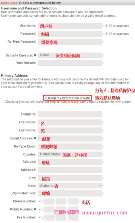 * 为必填内容,建议如实填写;勾选 “Keep my information private” 默认使用隐私保护,保护我们的注册信息。