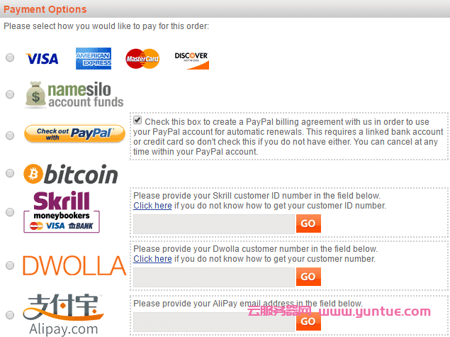 支持支付宝、Paypal、信用卡等多种方式付款。
