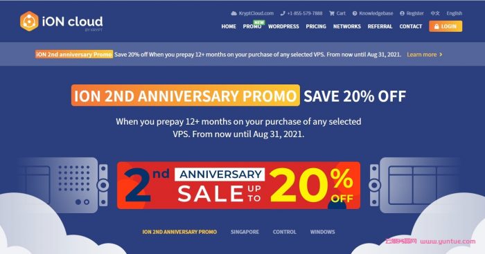 ION Cloud怎么样?iON Cloud的2周年促销开始,官方特意针对美国西海岸圣何塞机房、新加坡机房的CN2 GIA线路的云服务器搞8折促销,年付可享8折优惠。除了常规vps产品促销之外,ion也罕见的把自家的圣何塞gia和新加坡cn2网络也纳入了促销的范围,洛杉矶/圣何塞cn2 gia/新加坡cn2;VPS年付8折优惠,2核2G60G配置低至$15/月,感兴趣的小伙伴火速围观吧!!!
