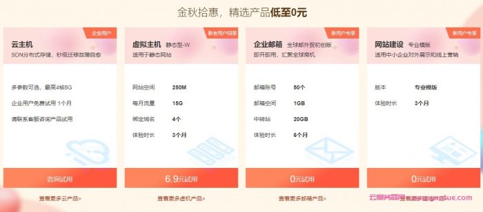 云主机有限制条件,企业用户可申请免费试用1个月。