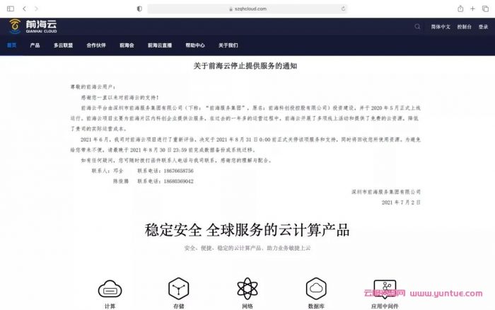 这不近日,前海云发布《停止提供服务的通知》,该平台于2020年5月正式上线运营,主要为前海片区内科创企业提供云服务。这不,前海云的一则公告就说明了前海云关停项目并停止提供服务了!
