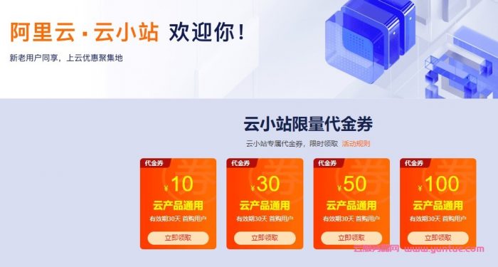 注意:在进入活动购买之前,还可以领取阿里云产品通用代金券,在支付订单的时候可以使用代金券直接抵扣(适合自定义购买包年包月使用)。代金券领取地址:阿里云官方云小站