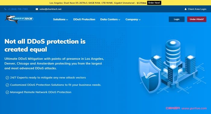Sharktech,美国老牌主机商,成立于2003年,公司位于拉斯维加斯,拥有超过25名雇员。SharkTech是专业抗DDoS攻击的机房。机房有多个层次的DDoS防护,最低可以处理10Gbps攻击,最高可以处理100Gbps攻击。Sharktech支持PayPal、信用卡或者支付宝等付款方式。
