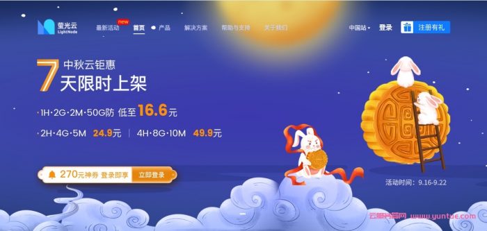 本次萤光云中秋云活动简单无套路,直接在原有价格上砍了一大刀,最低价格16元/月,而且有没有账户限制,新老客户都可以买,就是直接满满的诚意给大家送优惠了!