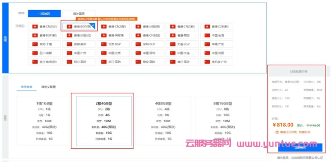 易探云香港云服务器是非常有优势的,我们在腾讯云或ucloud没有新用户的情况下,可以选择易探云香港云服务器,香港服务器机房节点很多,多种线路可选,特别是BGP和CN2线路,国内访问速度还是很快的,1核1G云服务器仅18元/月起,338元/年起;香港BGP线路云服务器2核4G10M带宽仅818元/年,香港CN2线路2核4G3M带宽仅720元/年,都是值得推荐购买,如图所示: