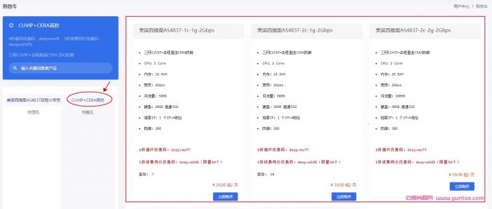 2、美国CUVIP+CERA高防vps