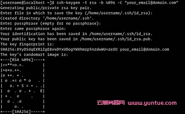 如果我们有 SSH 密钥对,我们可以使用这些密钥或备份旧密钥并生成新密钥。要使用我们的电子邮件地址作为注释生成新的 4096 位 SSH 密钥对,请运行: