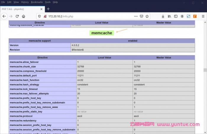 向下滚动,然后在Memcached部分,该部分显示有关Memcached的所有信息。