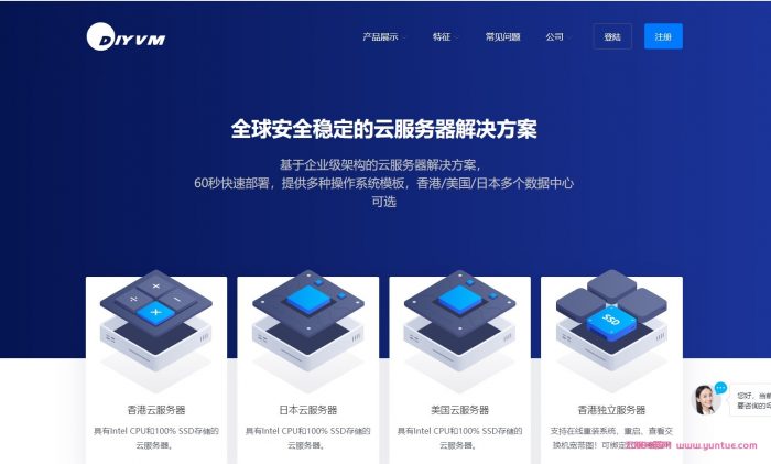 DiyVM是成立于2009年的老牌国人主机商,提供的产品包括VPS主机和独立服务器租用等,其中VPS基于XEN(HVM)架构,数据中心包括香港沙田、美国洛杉矶和日本等,均为CN2或者直连线路,支持异地备份与自定义镜像,可提供内网IP。
