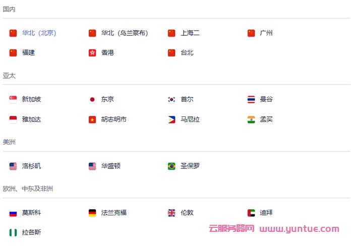 国内:华北(北京),华北(乌兰察布),上海二,广州,福建,香港,台北。除中国香港节点为CN2 GIA线路,BGP(非中国台北)或国际线路(中国台北);