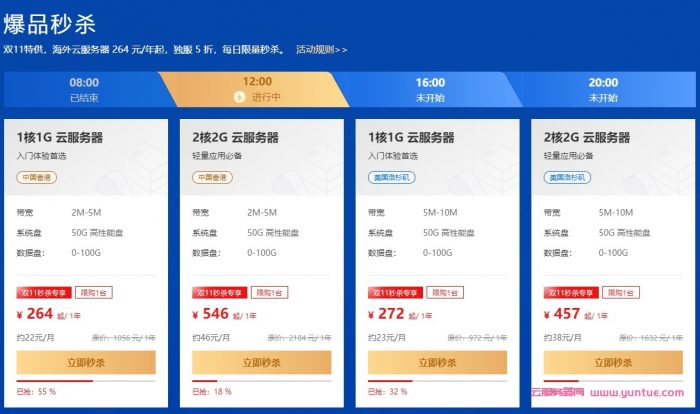双11特供,海外云服务器 264 元/年起,独服 5 折,每日限量秒杀。香港1核1G云服务器低至264元/年;2核2G云服务器仅546元/年起!