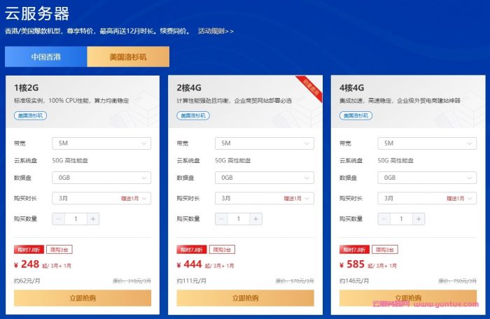 香港/美国爆款机型,尊享特价,最高再送12月时长。续费同价。香港1核2G2M云服务器仅254元/3+1月;美国洛杉矶1核2G5M云服务器仅248元/3+1月起。