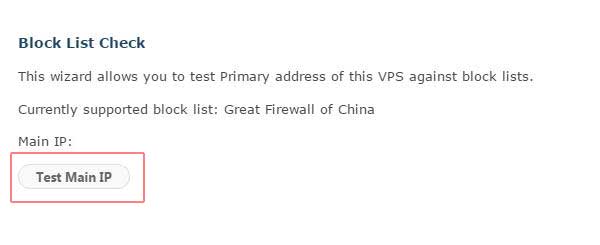 然后点击Test Main IP。之后会显示检测结果。显示IP NOT BLOCKED就表示IP正常没有问题,显示IP BLOCKED,就是IP出问题了,然后会有选项让你更换IP(Replace main ip)。当然第一次是免费的,在之后要每隔10周才能免费换一次。