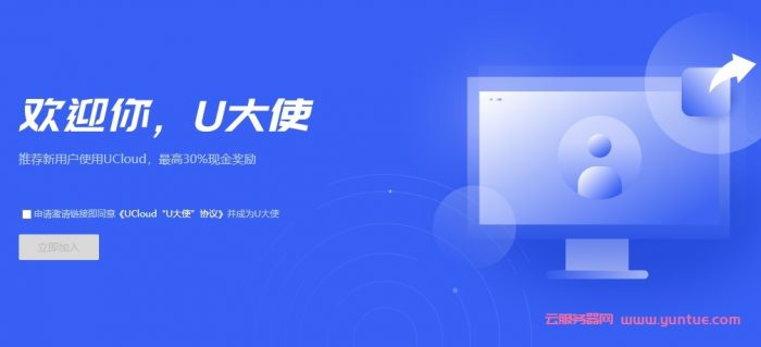 推荐新用户使用UCloud,最高30%现金奖励。加入ucloud u大使,推广越多,返利越多。