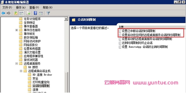 计算机配置->管理模板->Windows组件->远程桌面服务->远程桌面会话主机->会话时间限制