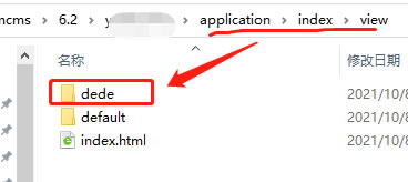 2)模板页面文件:在路径application\index\view下,新建文件夹命名dede(可自定义名称),将dedecms网站页面模板复制到此文件夹内,如下图: