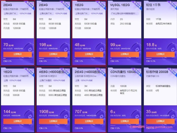 腾讯云服务器11.11大促,百款云产品限时秒杀,免费领11000元代金券,部分商品额外享10%满返,腾讯云服务器,基于第二代英特尔至强可扩展处理器,为企业提供可靠云服务!目前,腾讯云1核2G首4年48元-轻量云2核4G首年70元,2核4G3M+400G数据盘仅707元/3年,4核8G5M+800G数据盘仅1908元/3年,性价比很高,值得推荐购买!