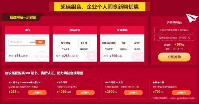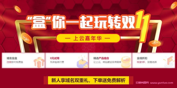 云服务器(www.yuntue.com)是一家专门做阿里云服务器代金券、腾讯云服务器优惠券的网站,这里你可以找到阿里云服务器腾讯云服务器等国内主流云服务器优惠价格,以及海外云服务器、vps主机等优惠信息,我们会为你提供性价比最高的云服务器和域名、数据库、CDN、免费邮箱等企业常用互联网资源。