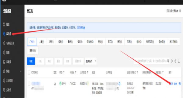 购买完成,直接返回之前的云主机界面,点击登录,如果自己不知道密码,可以点击更多,重置密码