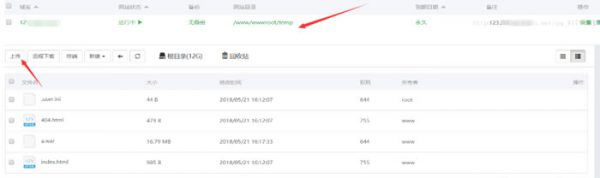 创建好网站之后,点击网站目录可以直接跳转到这个网站的目录,大家的网站源码可以先压缩为zip文件,然后在这里上传 ,压缩包可以在面板上面直接解压