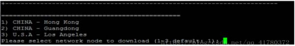提示你安装时使用那个下载节点,1中国香港 2广东3美国?可根据服务器所在地区选择,输入相应数字回车即可。