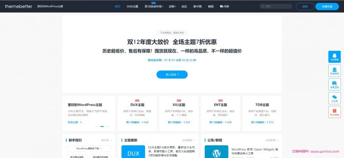 themebetter双12活动!themebetter继续是针对旗下DUX/XIU/TOB/ENT/d8主题,推出全场主题7折优惠,QQ和工单双售后保障,永无后顾之忧。