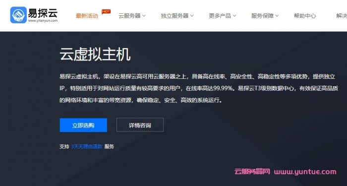 云服务器(www.yuntue.com)是一家专门做阿里云服务器代金券、腾讯云服务器优惠券的网站,这里你可以找到阿里云服务器腾讯云服务器等国内主流云服务器优惠价格,以及海外云服务器、vps主机等优惠信息,我们会为你提供性价比最高的云服务器和域名、数据库、CDN、免费邮箱等企业常用互联网资源。