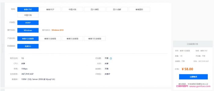 香港虚拟主机租用多少钱?香港1G全能型虚拟主机仅58元/年起