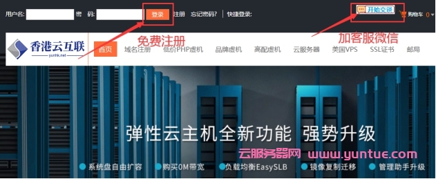 进入香港云互联官网1、免费注册 2、加客服微信联系客服 3、领取免费网站空间用户只需在自己网站首页底部加上“感谢香港云互联(yunhk.top)赞助主机空间”即可领取
