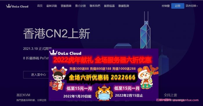 活动一 : 全场云服务器下单输入优惠码 :2022666 可享受6折优惠 低至 15 元一月 (注:优惠码可用于月付 季付和半年付)