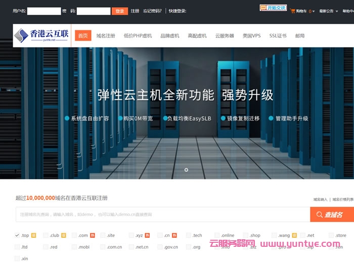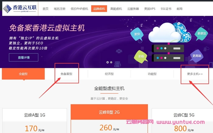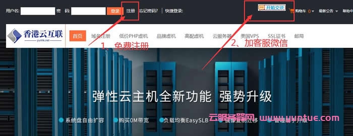 1、先选一靠谱的主机商,香港云互联老牌主机商产品、信誉、服务都有保障,其全能型免备虚拟主机自带CDN加速,港台机房,快速、稳定、安全。支持windows和linux操作系统,支持PHP、asp、asp.net程序语言。下面就用香港云互联操作下购买流程,首先进入香港云互联免费注册登录:http://yunhk.top/