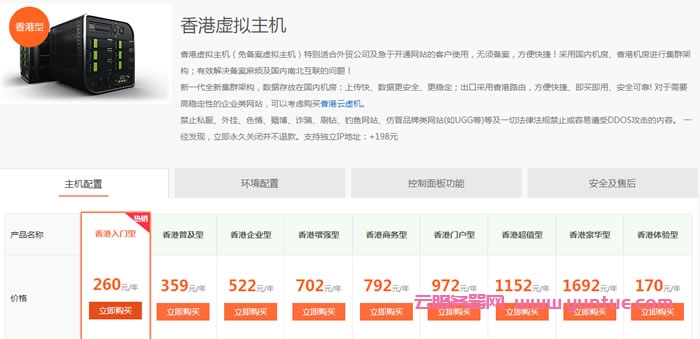 香港云互联部分活动产品: