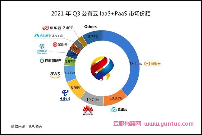 公有云 IaaS 市场份额为 11.03%,同比增加 1.54%;位居第二位,仅次于阿里云。